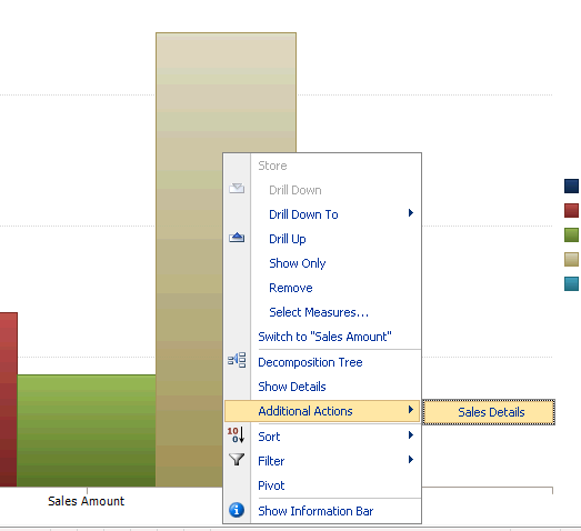 - Analytic Grid and Charts can do URL, Drillthrough, and SSRS actions. Drillthrough action does not need to be set to the default to use here.