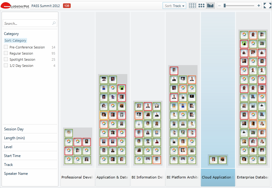 A really fun way you can browse all the sessions that will be at PASS Summit is by using LobsterPot’s HTML 5 PivotViewer control http://pivot.lobsterpot.com.au/PASSSummit2012.