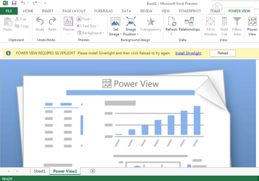 When using Power View in Excel 2013 the first thing you may notice is a screen like the below screenshot prompting you to download and install Silverlight.