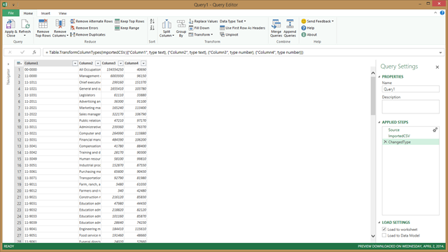 If I try to explore the data in these files by clicking Binary next to any of the files listed I’m presented with the following error: DataSource.Error: HDFS cannot connect to server ‘sandbox.hortonworks.com’. The remote name could not be resolved: ‘sandbox.hortonworks.com’.