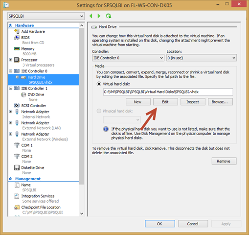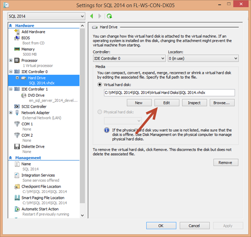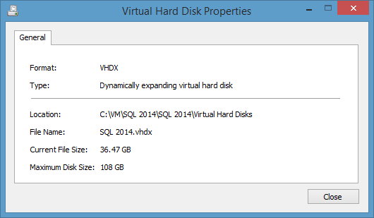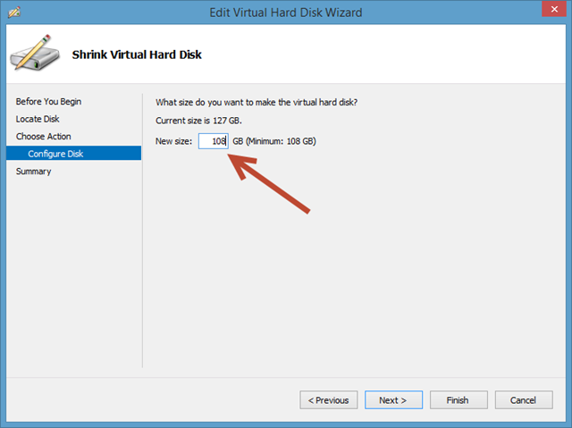 Have you ever created a Hyper-V virtual machine and later needed to change the size of the disk on the VM? When you initially create a virtual machine you provide a size for the virtual hard disk (as shown below).
