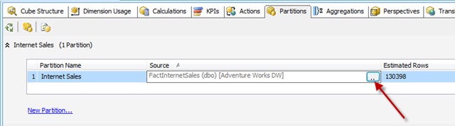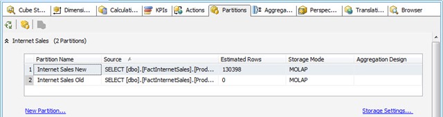 Now that you know what partitions are and why they are helpful let’s go through the steps of splitting a measure group into two new partitions. In this example you want to place internet sales that occur before 2003 into a partition called Internet Sales Old and everything after that date should go into a partition called Internet Sales New.