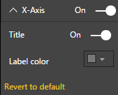 - The X-Axis section gives you the ability to turn off the title on the chart’s x-axis. You can also change the color of the category labels here, which I recommend making a more bold color than the default color.
