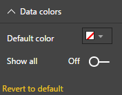 - The Data colors section gives you the ability to change the Default color values on the chart. You can also turn on Show all and provide specific colors you would like to see on each category of the Chord.