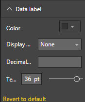 - The Data label section gives you the ability to change the Color, Display units, Decimal points and Text size of the number displayed. In my example above this would change the color of the number 9,038,161 to a different color if I had not configured the 3 states.