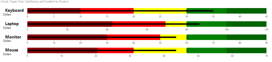 In this module you will learn how to use the Bullet Chart Power BI Custom Visual. The Bullet Chart serves as a replacement for poorly designed dashboard gauges and meters you might be using now. Typical gauges do not show very much information and require a lot of space on a dashboard. The Bullet Chart overcomes these flaws by allowing you to split into multiple categories (show more information) and orient the chart to fit your needs (requires less space).
