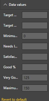 - The Data values section allows you to manually overwrite what the data thresholds are. Ideally you would have these properties driven by the data source but if needed use these properties manually to set these values.
