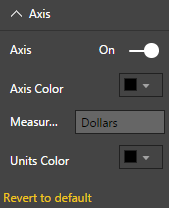 - The Axis section allows you to turn on or off the value labels, change the color of those labels and add a value label using the Measure units property.