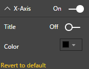 - Using the X-Axis or Y-Axis properties you can turn on or off the ability to display a title on these areas of the graph or change the color as well.