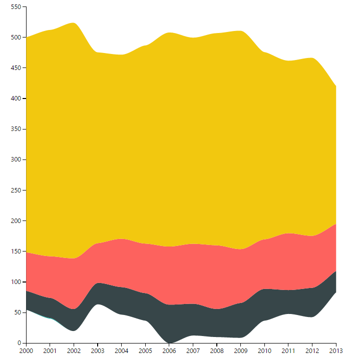 - Works and looks similar to a Stacked Area Chart but with a wiggle feature that gives it a more fluid look and feel