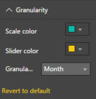 • Changing the Granularity section will adjust slider that appears in the top left corner of the visual. Here you can modify the color and the level that is currently displayed.