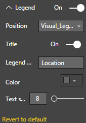 - Finally, under the Legend section you can turn on the a legend to be your key to understanding each of the region locations. In the example shown in the video turning on the legend does not makes sense because we’ve already added labels on the image and our colors do not map up to either because we’ve made this more of a KPI.