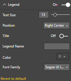 - Adjusting the Legend section allows you to move the legend or change the formatting displayed in the legend.