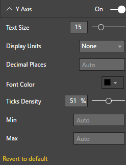 - Under the X Axis and Y Axis properties you can adjust the appearance of the labels shown both vertically and horizontally on the chart.