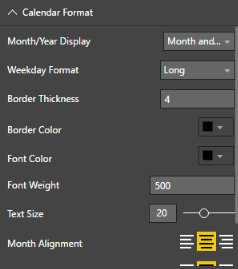 • Under the Calendar Format section you can adjust some of the text that is displayed on the calendar. For example, you can change the weekday format, month year format, and text formatting.