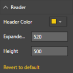 In the Reader section, you can configure the Header Color to set the background color for the Source as well as the background of the main image section. You can also set the Expanded Height and Width of the inline reader.