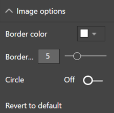 - In the Image options section you can change the border color, size and shape around your image.