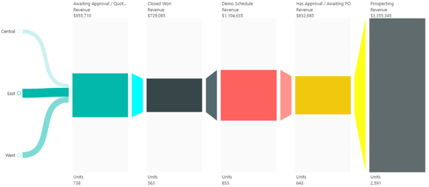 This Funnel with Source chart shows the multiple stages of the sales process.