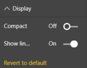 - The Display section allows you to toggle back and forth between the Compact and Expanded view of this visual. You can also determine if you want an icon for any web links you have.
