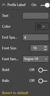 - Using the Prefix Label section you add text that would appear at the beginning of your measure value.
