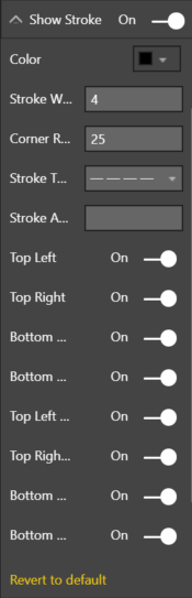 - Under the Show Stroke section you can modify the border around the card. There are several interesting setting here to customize your card.