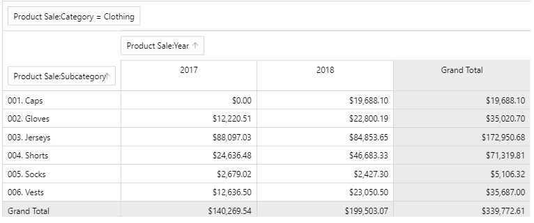- Using the Show Total section you can determine if total values are displayed on columns or on rows..
