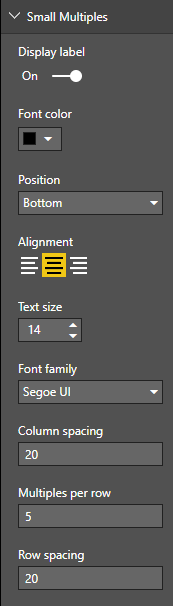 - Using the Small Multiples section you can adjust how many charts are shown per row and the formatting of the chart labels.