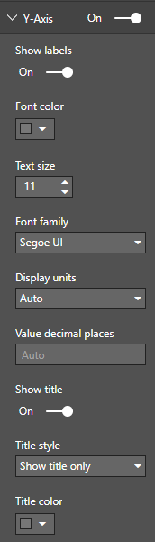 - Using the Y-Axis section allows you to show labels on the Y-Axis of each column of charts.