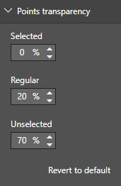 - Changing the Points transparency property allows you to determine if the points in the chart are transparent under different circumstances like when items are selected, unselected or under normal circumstances.